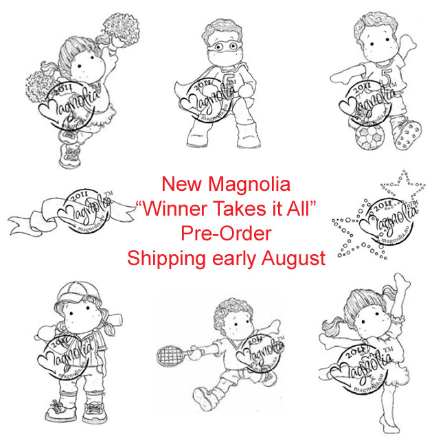 Don't forget that we are not accepting pre-orders for the Magnolia "Winner Takes it All" Collection. There is a drawing for 3 free Magnolia stamps on the store's blog if you help spread the word that we are now carrying Magnolia stamps.
