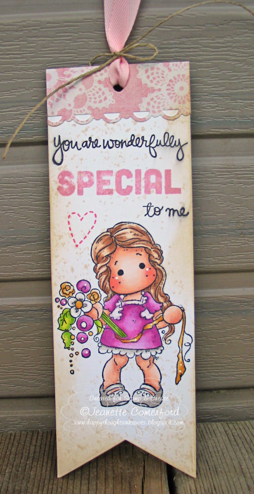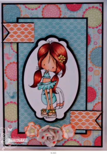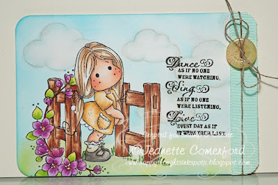 Jeanette used stamps from Magnolia's Once Upon a Time Collection to create this door-hanger. She used Little Cute Tilda, Theatre Curtain, and Tilda's Mattress to create this sweet scene.